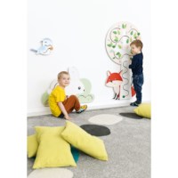 Decoratief wandbord in de vorm van een vogel. Het bord kan met de meegeleverde schroeven aan de muur bevestigd worden. Stimuleert de oog- handcoördinatie.