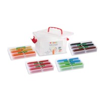 Dikkere watervaste waskrijtjes in een kunststof doos met 120 krijtjes in 8 kleuren. Deze kleine afgeronde waskrijtjes zijn zo gemaakt dat zelfs de jongste kinderen het leuk vinden om ermee te tekenen.