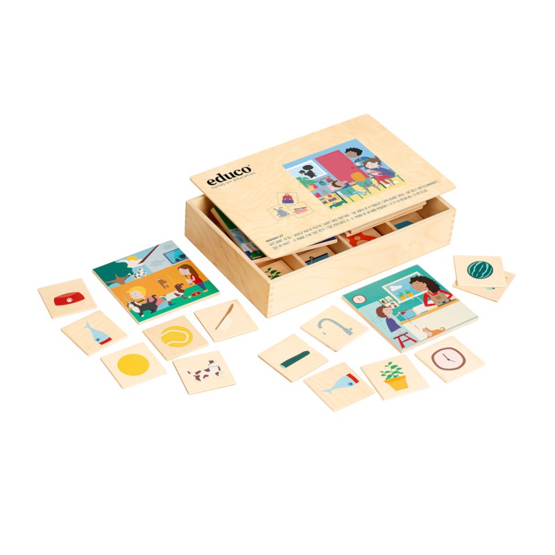 objecten of activiteiten laten zien. Kinderen vergroten hun woordenschat, leren begrippen in context gebruiken en oefenen met logisch denken en categoriseren.