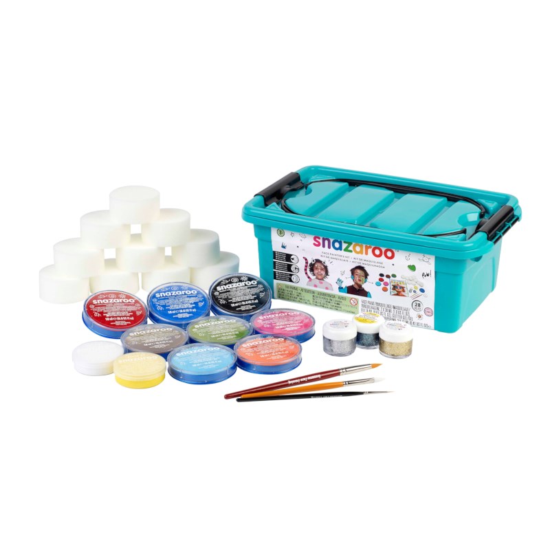 Geschikt voor het schminken van ± 600 gezichten. Geleverd in een stevige plastic box.
