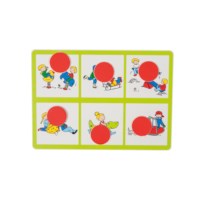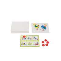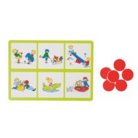 Bingo met beelden. Draai een kaart om en leg een fiche als de afbeelding op je bingokaart staat.