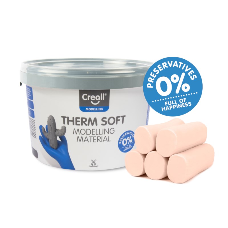 Creall-therm boetseerklei is klei voor kinderen vanaf 8 jaar, creall-therm boetseerklei zalmroze is zeer geschikt voor het maken van poppen gezichtjes. In handige emmer om de klei in te bewaren. De boetseerklei is soepel te verwerken, geeft niet af plakt niet en verhard niet.