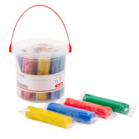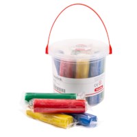U krijgt geleverd: 1 kunststof pot met 12 staven klei in de kleuren rood, groen geel en blauw