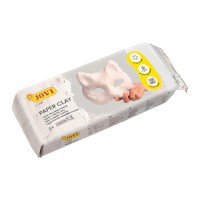 Deze papierklei (paper clay) is klaar voor gebruik. Voordeel van papierklei is dat het licht in gewicht is, droogt hard op en is gemaakt uit papiervezels gemengd met een kleefmiddel.