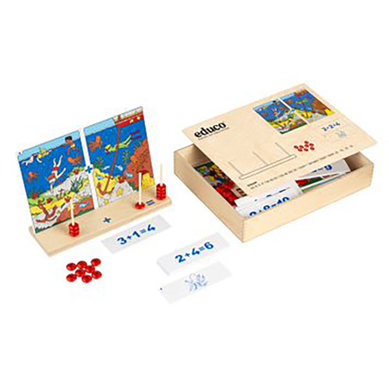 Tel alles bij elkaar op en maakt de optelsom. De uitkomst laat je zien met kralen.