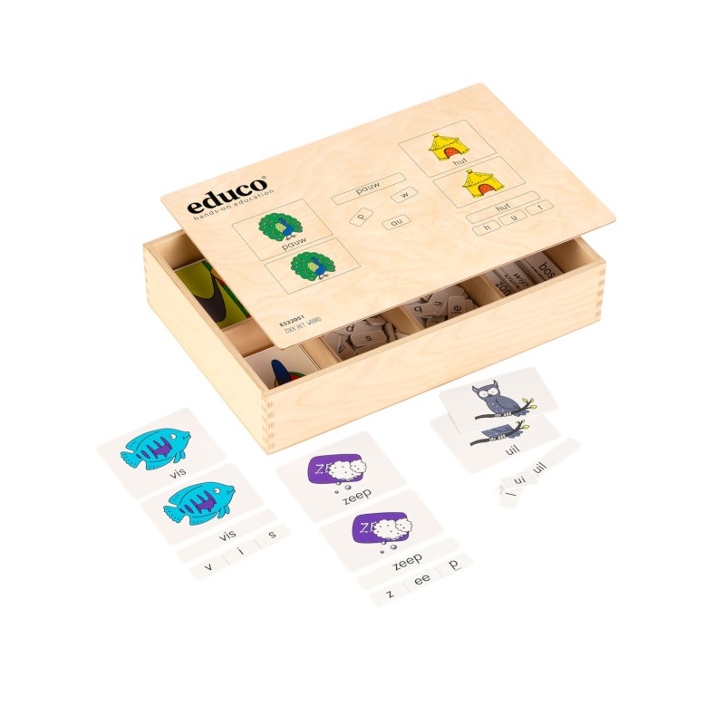 Nieuwe woorden ontstaan als je klanken en letters samenvoegt en herkent hoe ze in elkaar passen. Educo familie WOORDBOUW. laat kinderen spelenderwijs woorden opbouwen uit losse delen. Zo ontwikkelen ze inzicht in structuur en spelling, én stimuleren ze logisch denken en taalcreativiteit.